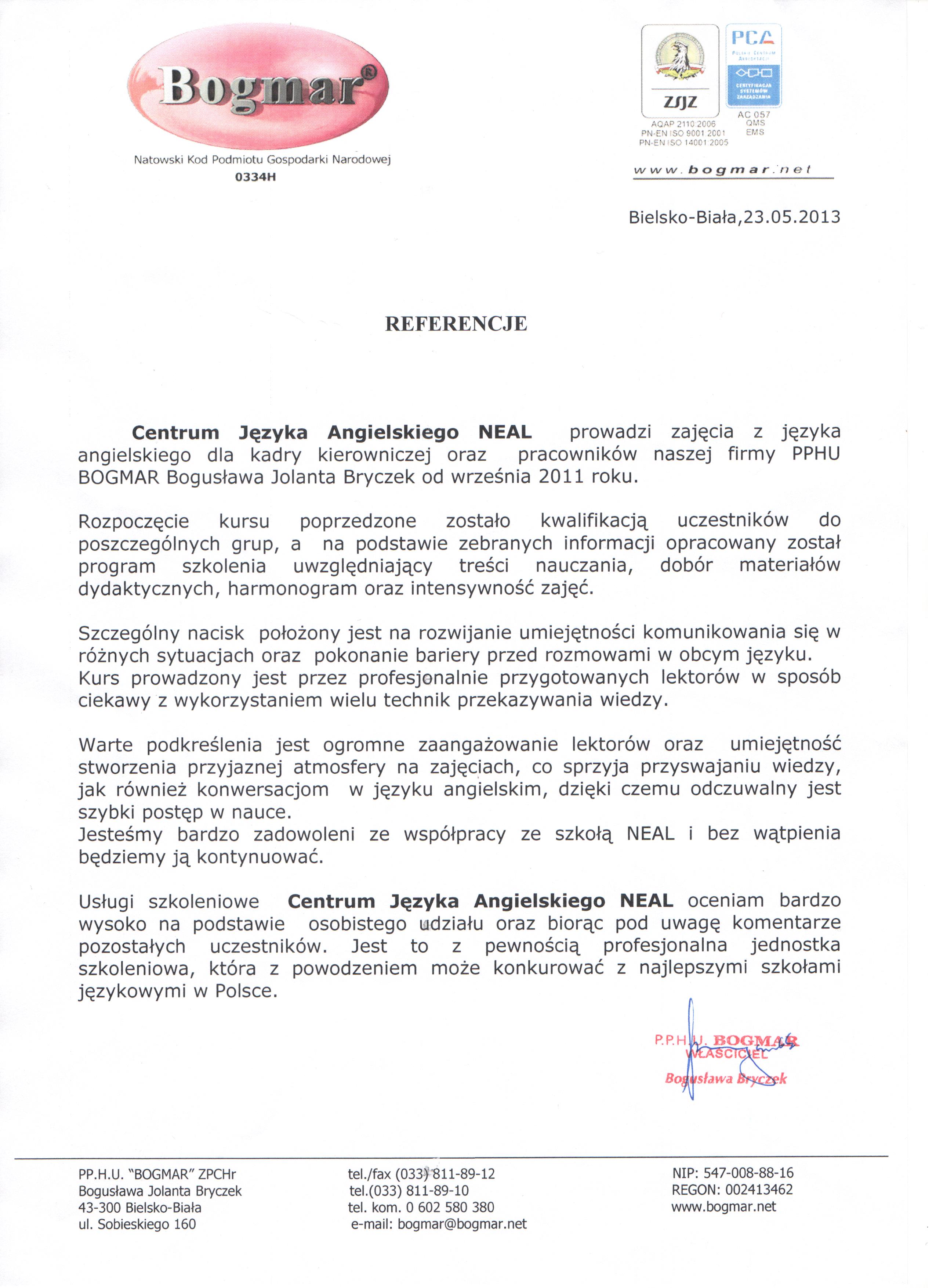 Zajęcia mogą odbywać się na terenie Państwa Firmy lub w siedzibie Centrum Języka Angielskiego NEAL w grupach zamkniętych lub otwartych.